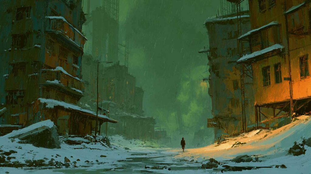 The sky tore open, the world began to scream, and the freeze began. The official story calls what happened next a “brave corporate-led exodus”. That’s a clean word for what it really was: a panicked, selfish scramble for the lifeboats while the world drowned. This was the great schism, the moment humanity was split in two: those who could afford a ticket to the stars, and those who were left behind to rot.