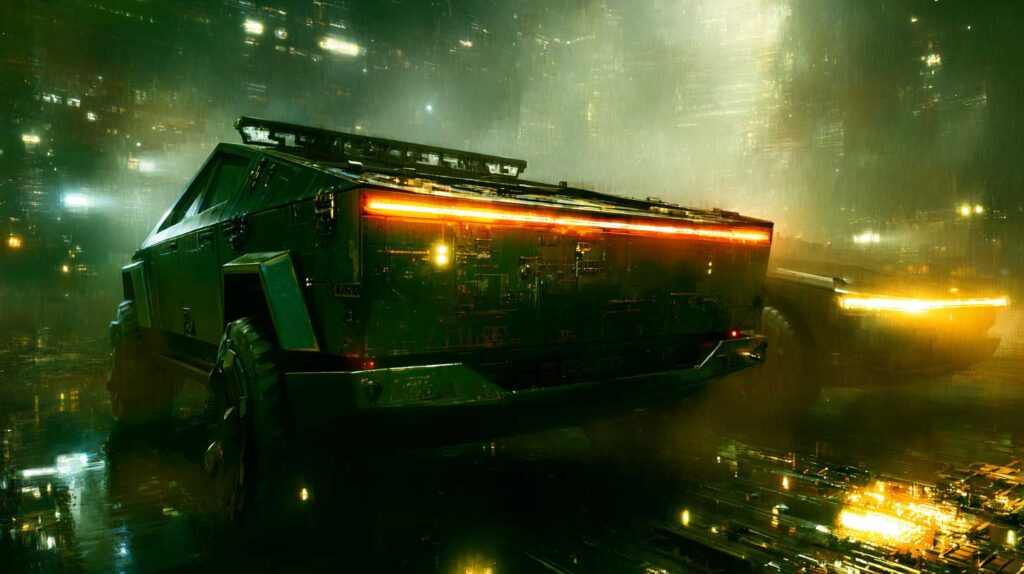 You’ll know them when you see them. They move through the streets clad in black armored trench coats and reflective visors that hide any hint of a soul. They don’t walk the beat; they stalk it, moving with a cold purpose that makes the crowds part like water. Their patrol trucks, the “Enforcers,” are beasts of minimalist, brutalist design — all hard angles and flat, matte-black planes that seem to drink the amber light of the city . They move with an unnatural quiet, a low electric hum that’s more felt than heard.